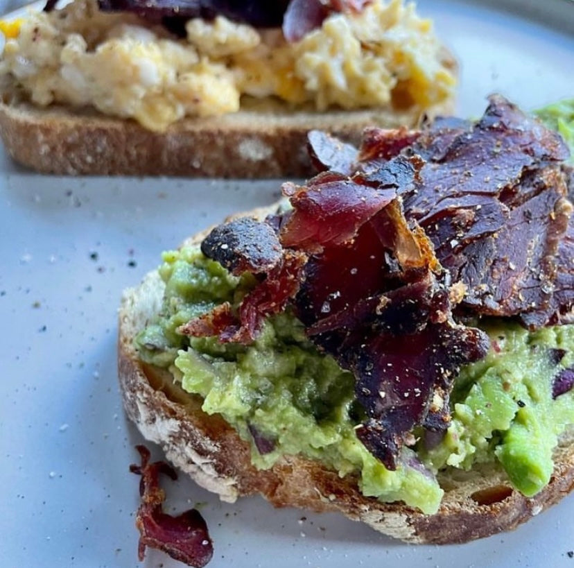 Spicy sourdough, avocado & Biltong brunch. Adding that 'kick' of flavour.